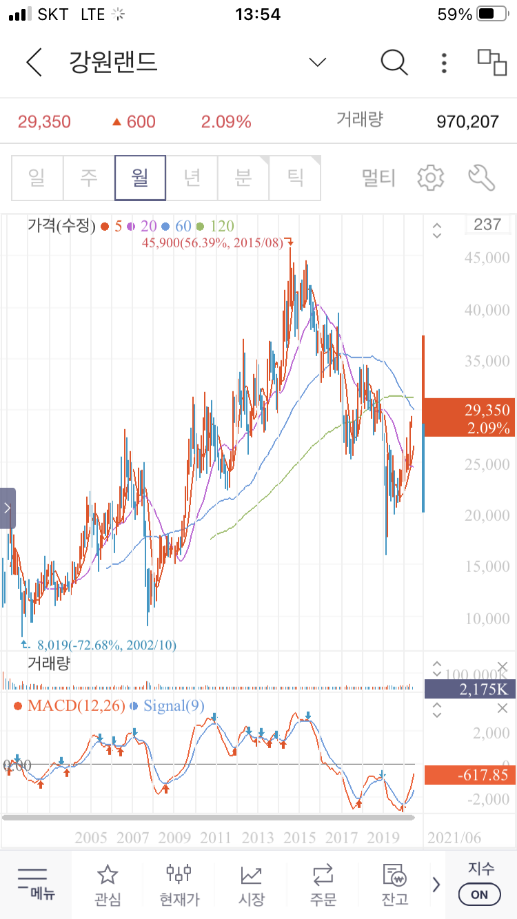 강원랜드 월봉, 주봉차트