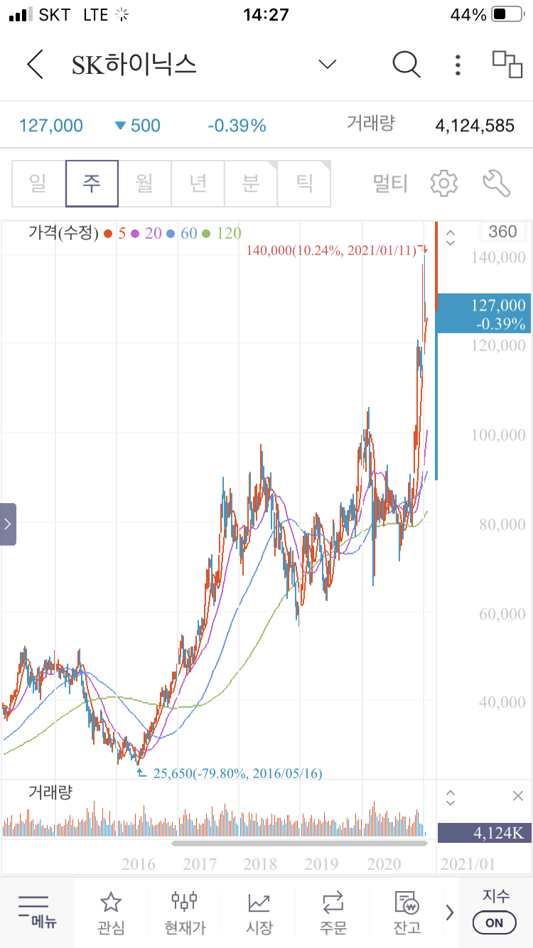 SK하이닉스 연, 월, 주봉차트