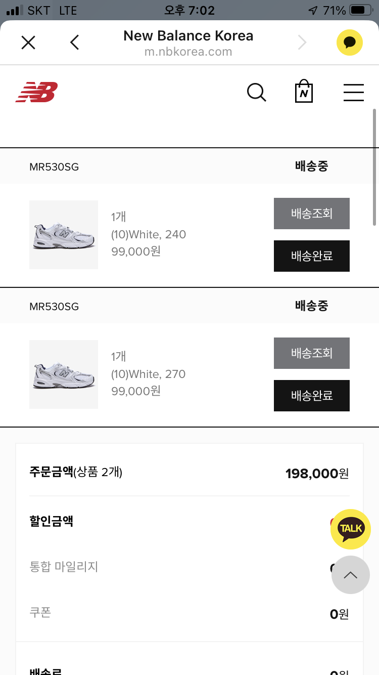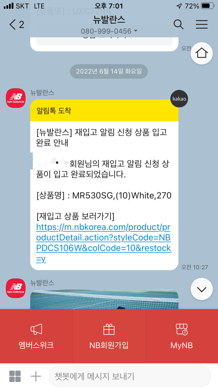 오늘 소개해드릴 주인공 발이 편하기로 소문이 자자한 신발 뉴발란스 530은 너무 인기가 많아서 공식 홈페이지에서 구하기 힘들어 지난번 재 입고 알림 설정을 해두었는데 갑자기 알림이 와서 바로 아내와 제 신발 두켤레를 구매 했어요