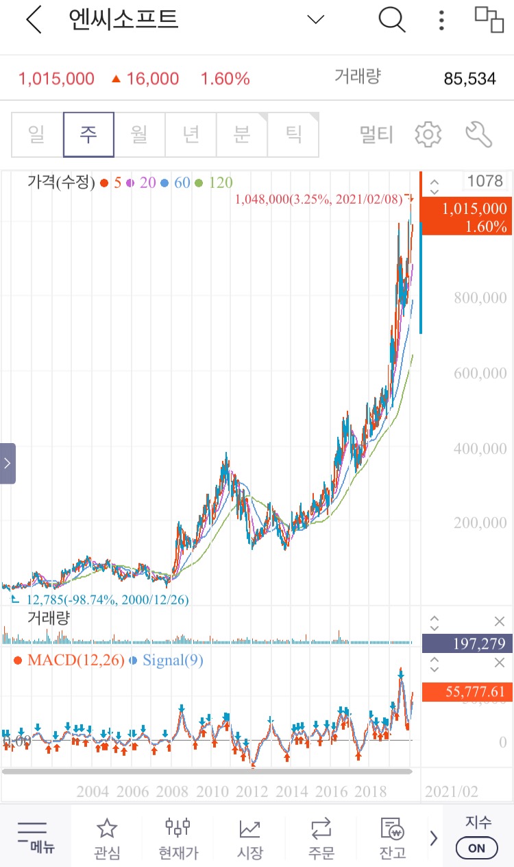 3. 엔씨소프트 월봉, 주봉 차트