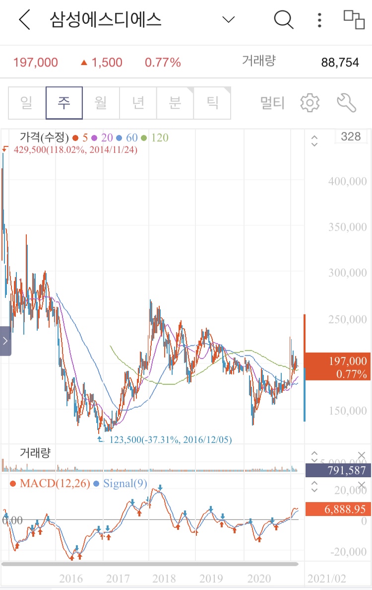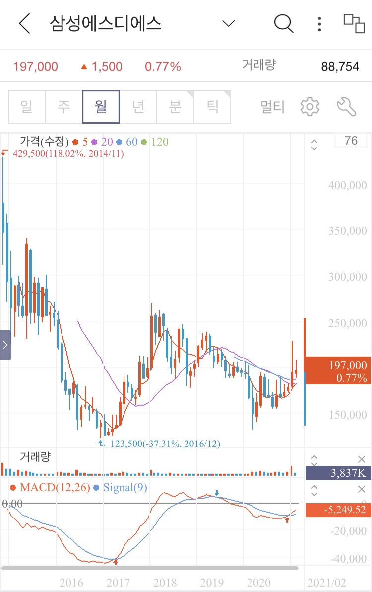 4. 삼성에스디에스 월봉, 주봉