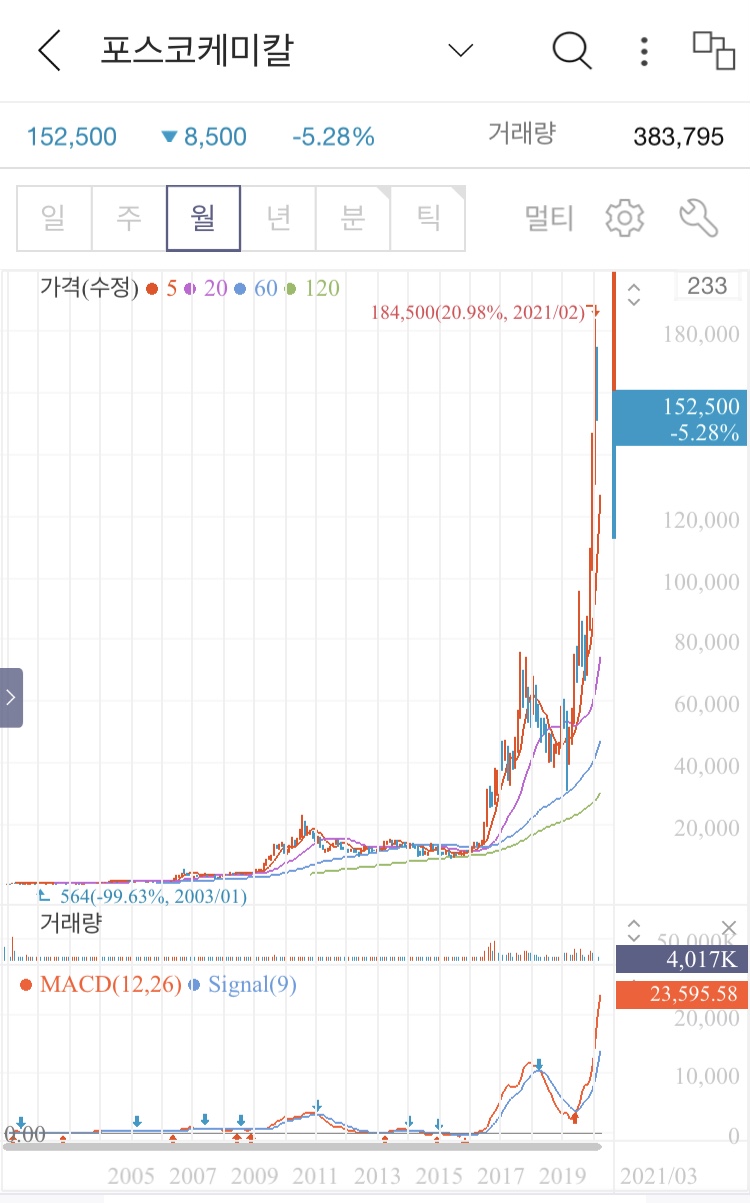 충분히 좋은 전망을 받고 있는 포스코케미칼에 대한 글을 마치며, 지난 해 말 10만원 정도에서 사고 싶었던 주식이 3개월만에 50%가 상승을 했네요. 생각만 하지말고 실행을 했어야 한다는 생각이 너무 아쉽습니다만 앞으로 충분히 더 성장가능하기에 조만간 제 포트폴리오에 넣고 싶은 주식입니다.충분히 좋은 전망을 받고 있는 포스코케미칼에 대한 글을 마치며, 지난 해 말 10만원 정도에서 사고 싶었던 주식이 3개월만에 50%가 상승을 했네요. 생각만 하지말고 실행을 했어야 한다는 생각이 너무 아쉽습니다만 앞으로 충분히 더 성장가능하기에 조만간 제 포트폴리오에 넣고 싶은 주식입니다.
